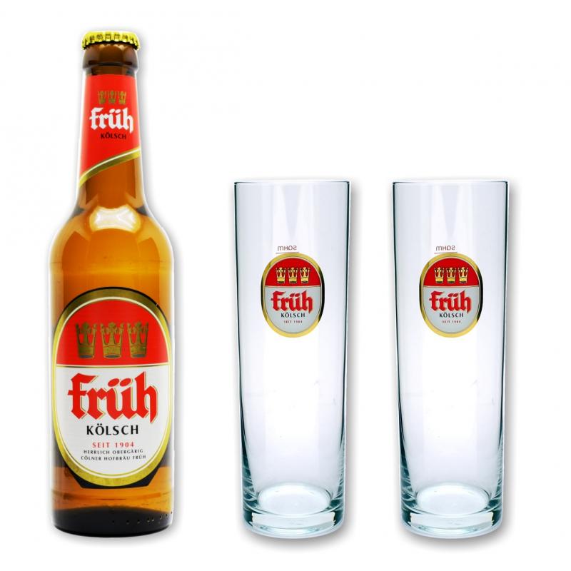 Sie erhalten eine Flasche des Bieres mit 2 orginal Gläsern in der berühmten Stangen Form.