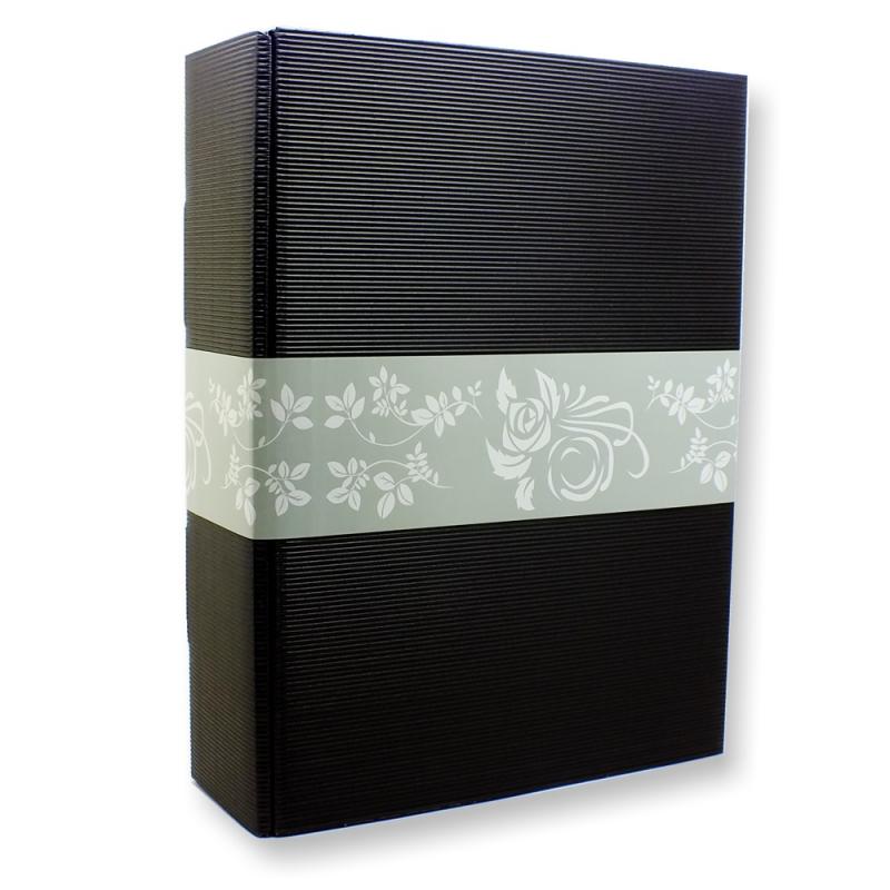 - schwarzer Geschenkkarton von meinglas24 mit Papierbanderole