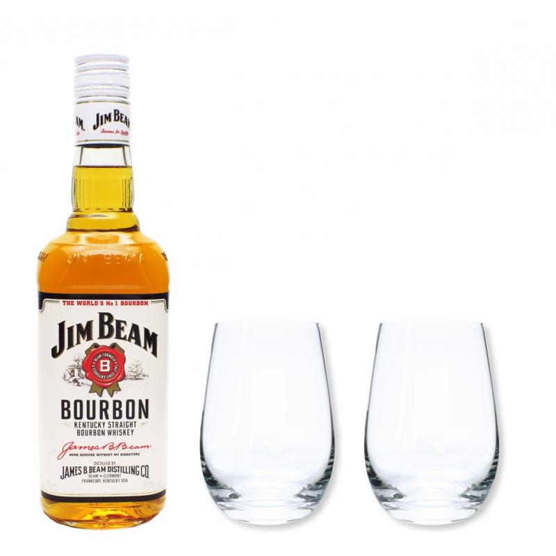 Der Jim Beam Whiskey in der white label Edition mit 2 Whisky Bechern.