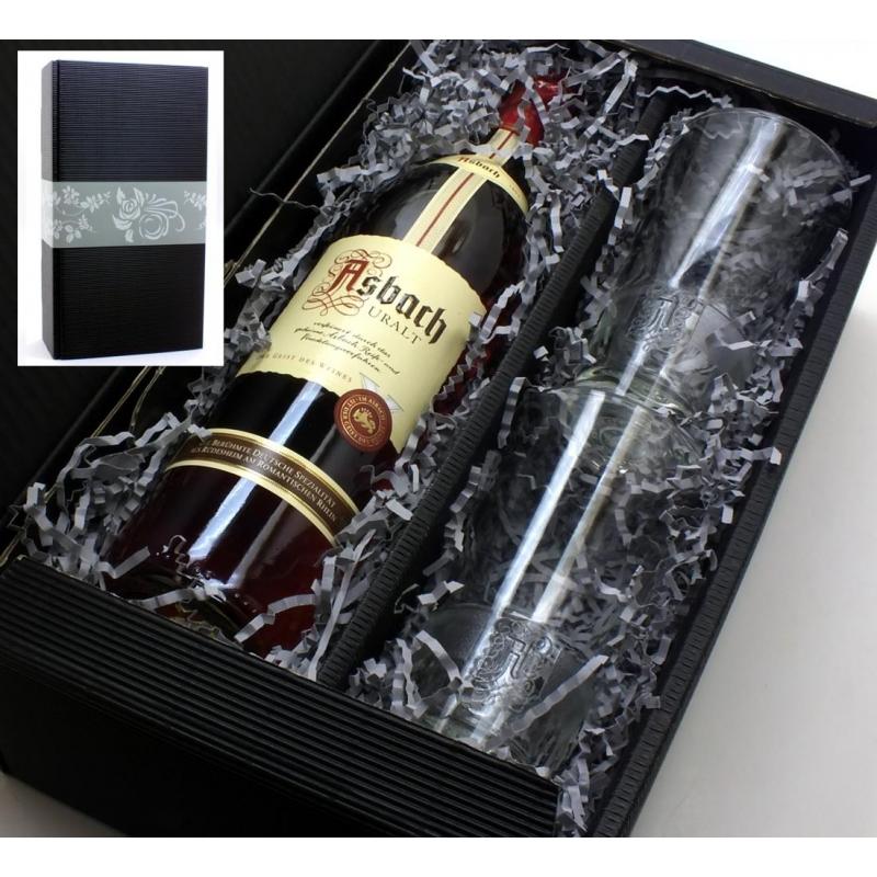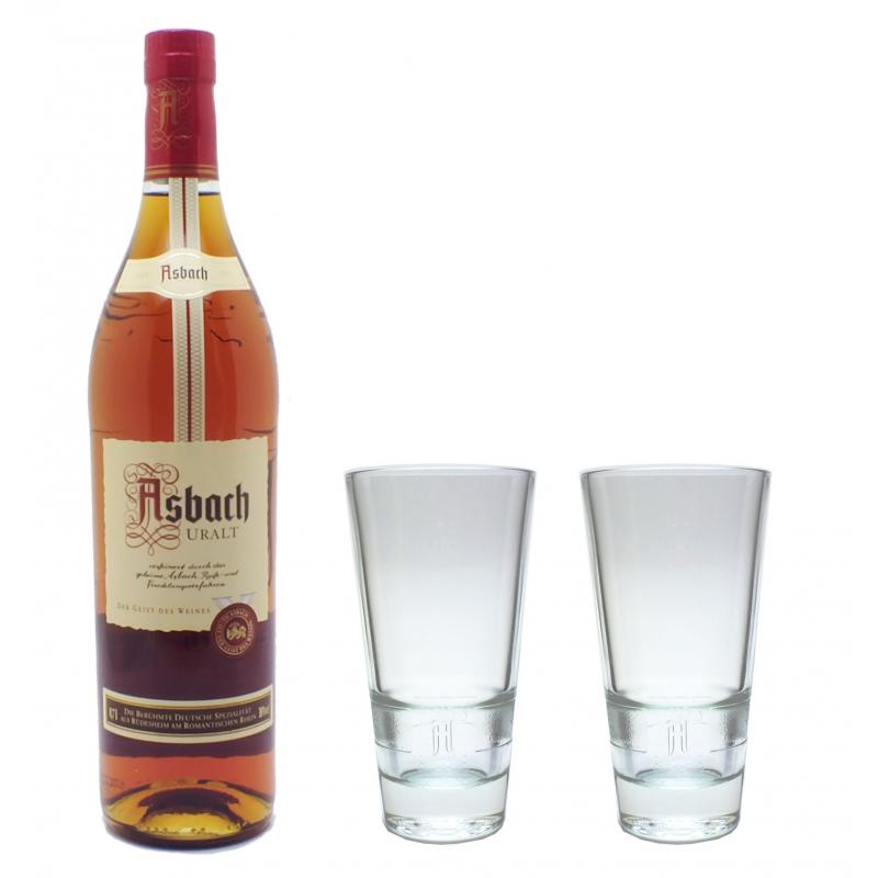 Dazu erhalten Sie 2 Longdrinkgläsern mit dem Asbach Logo als Relief.